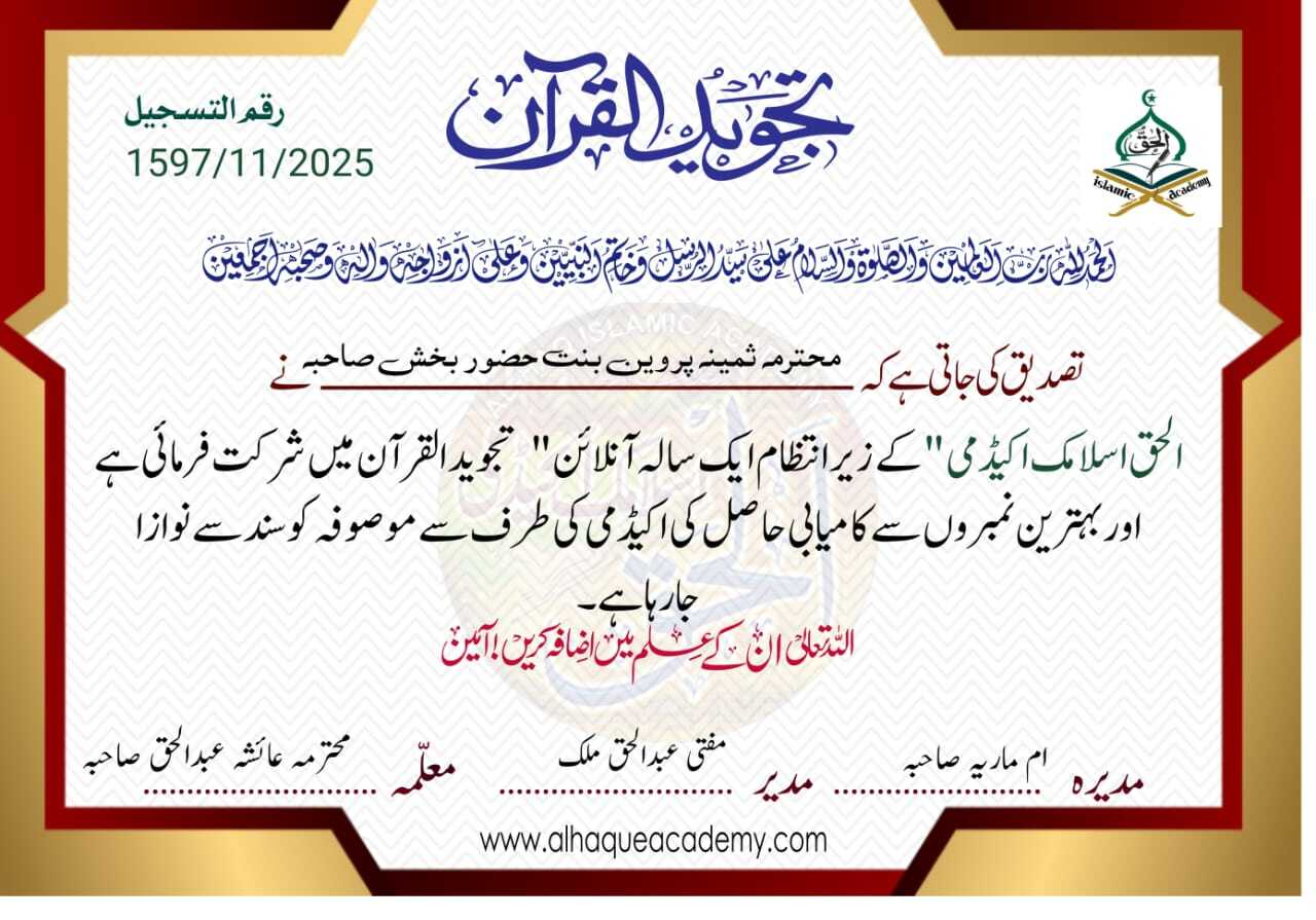 Certificates Learn, Achieve & Get Certified تجوید القرآن تجوید سند تفسیر تفسیر رمضان کورس حفظ سرٹیفکٹ رمضان سرٹیفکٹ CPR سرٹیفکٹ سورہ الکہف سرٹیفکٹ فتنہ دجال سند امتیاز تجوید القرآن سند امتیاز تفسیر القرآن سیرت الصحابہؓ کمنٹس متفرقہ مقابلہ مضمون نویسی موبائل گرافکس تفسیر القرآن